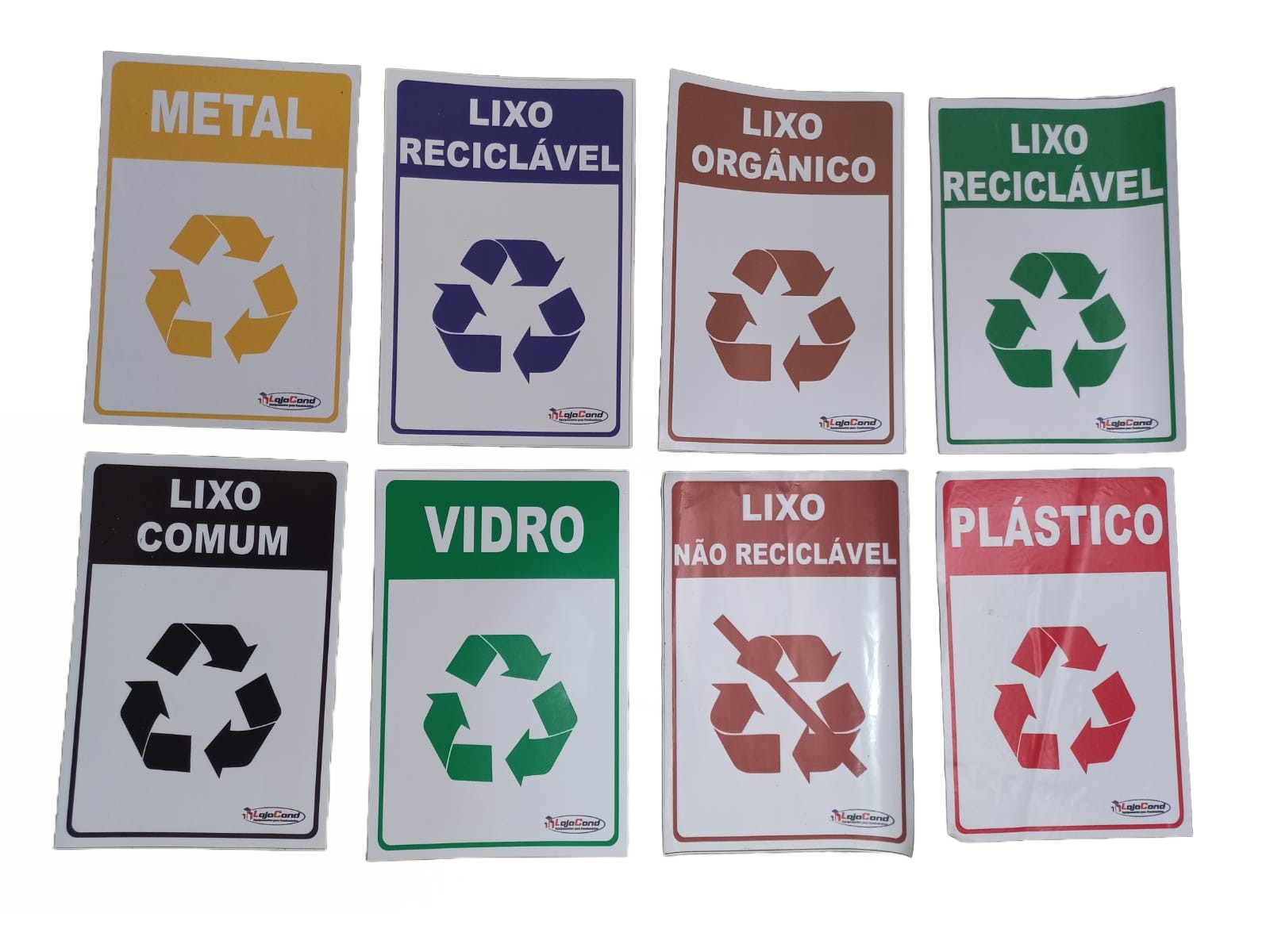 Nossos adesivos para lixeiras de coleta seletiva, são impressos em Adesivo Vinil.